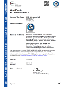 KKS customers operate in demanding sectors such as the medical technology industry, where fulfilling various customer-specific and regulatory requirements and standards represents a key success factor. Qualified equipment and high process reliability thanks to validated processes, procedures and methods are important prerequisites for meeting the quality requirements expected of medical products.